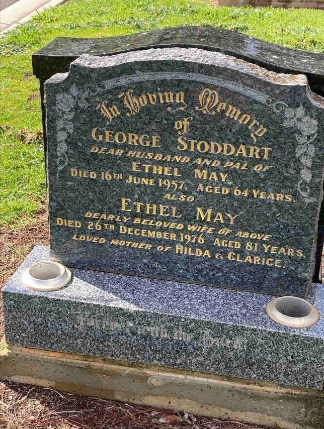 George Stoddart and Ethel May Stoddart are buried at the Centennial Park Cemetery, Adelaide, South Australia.