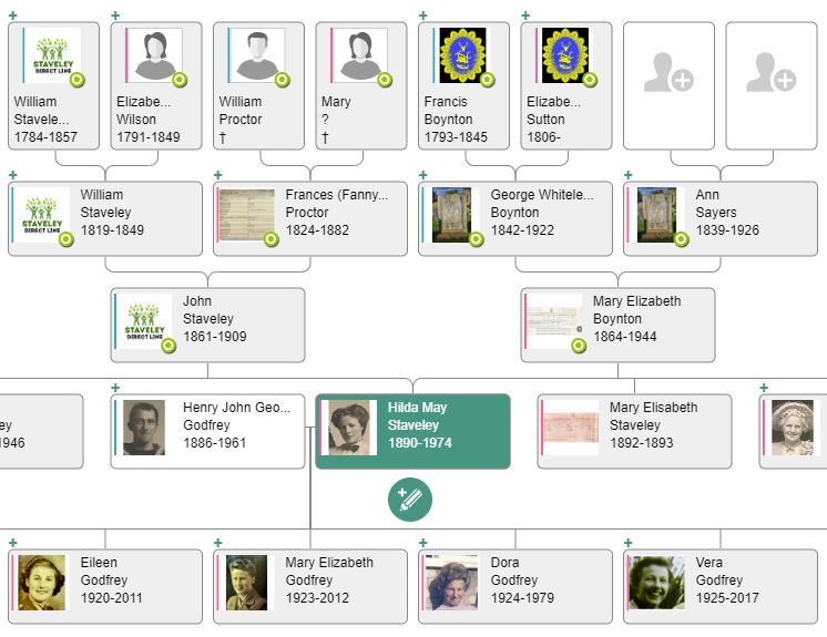 In the 1901 census Hilda Staveley is age 11 and living in Muston. Her relation to the Head of house George Boynton age 59 is that of Grandchild. Ann Boynton his wife is aged 61 and Edith Annie, Hilda May’s sister, is also living at this address and is 14 years of age.
