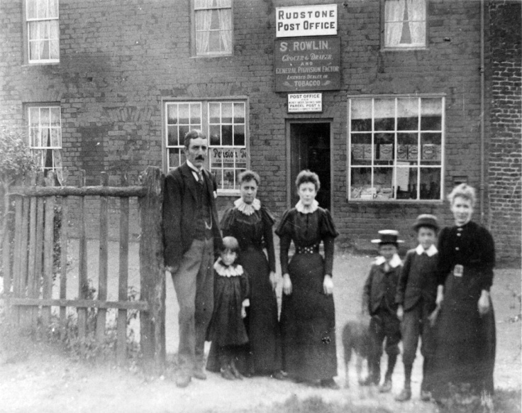 Ruby Millicent Rowlin third adult in from the left at Rudston Post Office which the family managed